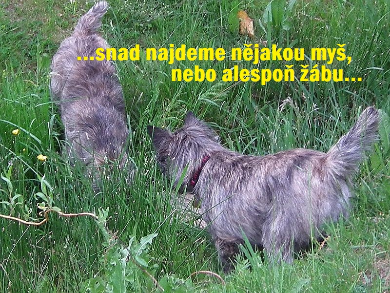 Ze sedmi přihlášených cairn terriérů, pouze tři nastoupili.